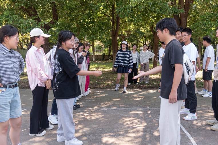 活動(dòng)的第一個(gè)環(huán)節(jié)是“生日接龍”游戲,同學(xué)們按照生日月份順時(shí)針排列成一個(gè)圓圈,然后用獨(dú)特的肢體語(yǔ)言進(jìn)行交流,初步拉近彼此的距離。隨后,在“滾雪球”環(huán)節(jié)中,每位同學(xué)用一句話(huà)介紹自己,包括姓名、籍貫、學(xué)院及個(gè)人愛(ài)好等,下一位同學(xué)則需復(fù)述前面同學(xué)的介紹,在加上自己要介紹的內(nèi)容,形成一個(gè)有趣的“滾雪球”效應(yīng),既考驗(yàn)記憶又增進(jìn)了解。在“相似圈”游戲中,同學(xué)們大聲喊出自己的愛(ài)好或身體特征,有相同特征的同學(xué)就一起向前跨出一步,同學(xué)們?cè)谳p松的氛圍中找到了共鳴。“螃蟹扭一扭”通過(guò)隊(duì)伍之間的石頭剪刀布分出輸贏,勝者大喊“螃蟹”,敗者集體則“扭一扭”,現(xiàn)場(chǎng)笑聲不斷。最后的“一起站起來(lái)”環(huán)節(jié),同學(xué)們兩兩腳尖相對(duì),手拉手嘗試不借助外力一起站起來(lái),活動(dòng)從最初的兩個(gè)人逐漸增加至四人、八人,這不僅考驗(yàn)了團(tuán)隊(duì)的默契,更在挑戰(zhàn)中增強(qiáng)了同學(xué)們之間的信任與協(xié)作精神。