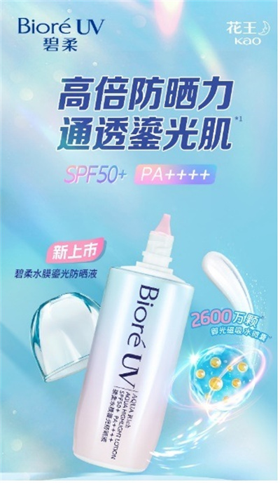 自“碧柔水磁膜防曬系列”上市以來,“由水到膜”的嶄新防曬體驗受到了大眾的青睞。隨著消費者的防曬目的日趨多元化,購買防曬產品的關注點中,除了防曬指數外,美顏、提亮等附加價值也逐漸備受關注。為此,花王旗下“碧柔(Bioré)”品牌于2025年2月重磅推出“水磁膜防曬系列”新品“碧柔水膜鎏光防曬液”,防曬力升級*1的同時結合三色珠光,幫助自然隱匿毛孔、助力提升面部“骨相美”,傾力為大家帶來多元化的防曬體驗。