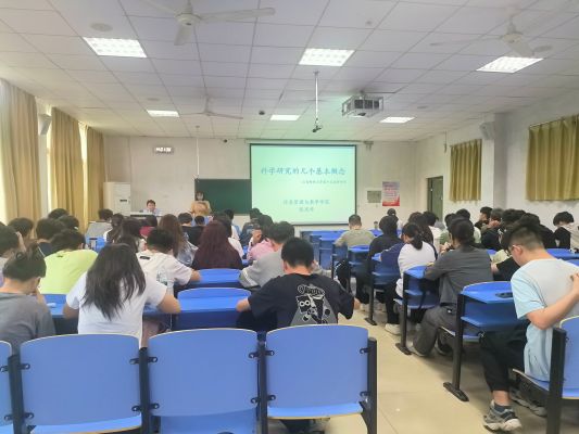 為了讓學生們能深刻地體驗學習,講座創新打造“三位一體”教學模式:學者視角理論轉化——以學術權威視角拆解科研本質,將抽象理論具象為可操作案例;多元交互場景構建——融合板書推演、PPT可視化和口語化講解,營造立體化認知場景;精準聚焦閉環搭建——圍繞基礎概念貫通“理論-方法-實踐”鏈路,筑牢科研創新根基。
