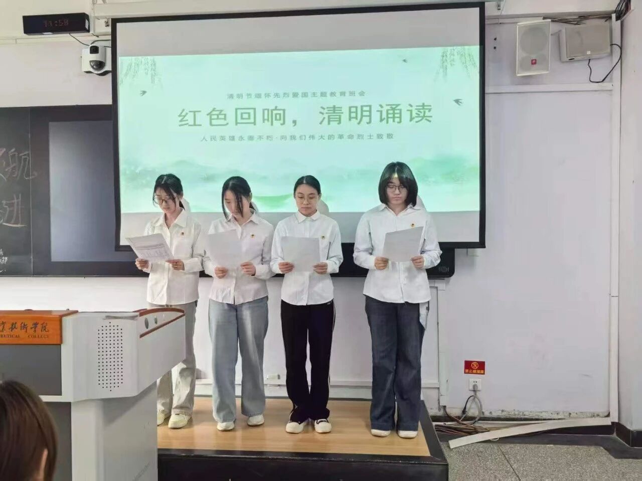 以“聲”為媒,以“誦”傳情。同學(xué)們開展“聲傳哀思,禮敬先烈”朗誦會(huì),深情誦讀紅色家書、英烈事跡與清明詩(shī)文,用真摯聲音追思先烈,讓紅色精神在聲聲傳頌中薪火相傳。