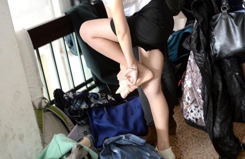 女大學生應聘空姐,走廊里更衣換鞋