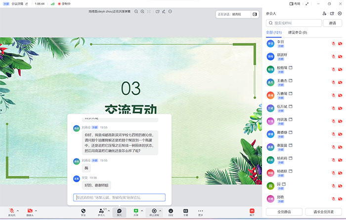 整場(chǎng)活動(dòng)氣氛融洽,觀眾們就嘉賓的分享提出問題并現(xiàn)場(chǎng)進(jìn)行交流,討論熱烈,參與人數(shù)超180人次,讓觀眾們從多視角感受科技助力低碳環(huán)保!