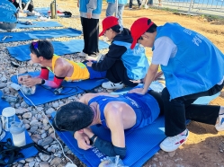 志愿者深入賽事終點康復區,憑借運動康復、急救等專業知識,為完賽選手開展標準化服務,從肌肉拉伸、筋膜放松到疲勞干預,全程守護選手健康,將勞動教育融入體育賽事保障,生動詮釋奉獻精神。