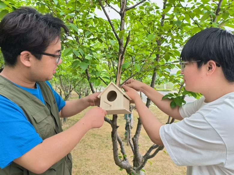 5 月 26 日,同學(xué)們將制作完成的手工鳥巢懸掛至校園樹木上。懸掛現(xiàn)場,大家仔細(xì)挑選粗壯枝頭,用鐵絲穩(wěn)妥固定鳥巢,確保巢體牢固且便于鳥類棲息。當(dāng)親手制作的鳥巢點(diǎn)綴校園,同學(xué)們切實(shí)感受到勞動(dòng)實(shí)踐的成就感,見證了 “筑巢護(hù)生靈” 從構(gòu)想轉(zhuǎn)化為實(shí)際行動(dòng)的過程。