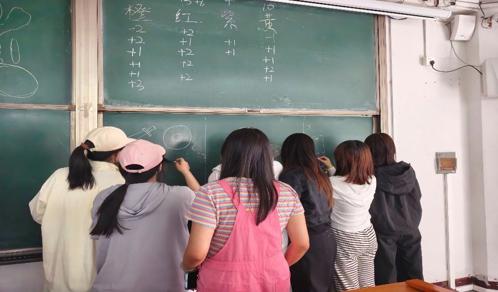緊接著的你畫我猜游戲同樣精彩。每組安排兩名同學,其中一人負責猜題,其余同學共同作畫,每人作畫時間為10秒,所猜詞語均與國家安全相關。這一環(huán)節(jié)不僅考驗了同學們對國家安全知識的了解程度,還鍛煉了團隊成員之間的默契。在游戲過程中,同學們積極討論,發(fā)揮創(chuàng)意,用生動形象的畫作傳遞信息。