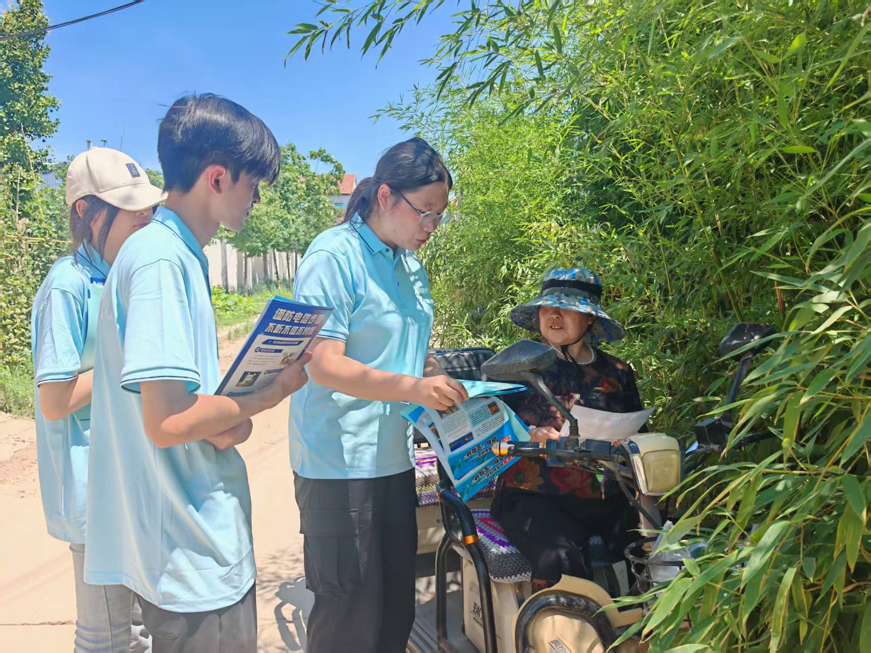 7月5日,“鄉村振興 青春有為”振興實踐團積極投身鄉村振興工作,成員們遠赴封丘縣黃陵鎮舊黃陵村和延津縣豐莊鎮秦莊村,以宣傳為橋梁,搭建知識傳遞與溝通的平臺。深入鄉村,向居民們發放精心準備的宣傳資料,圍繞鄉村產業發展、生態建設、文化傳承等內容,耐心講解鄉村振興政策與規劃。從廣場上與村民的交流,到鄉間小路為村民答疑,青春身影穿梭在鄉村的各個角落。通過一次次講解、一頁頁資料傳遞,讓更多人了解鄉村振興的意義與路徑,凝聚社會共識,匯聚支持鄉村發展的力量,用實際行動為鄉村振興注入青春動能,繪就城鄉攜手奮進的美好。