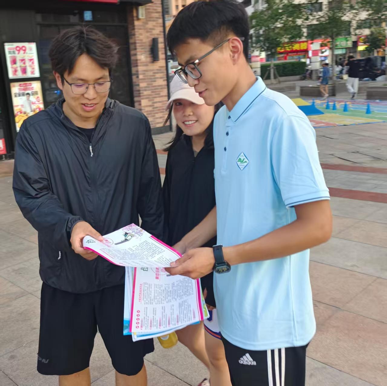 圖為實踐團成員在廣場向居民講解政策 劉思源 攝