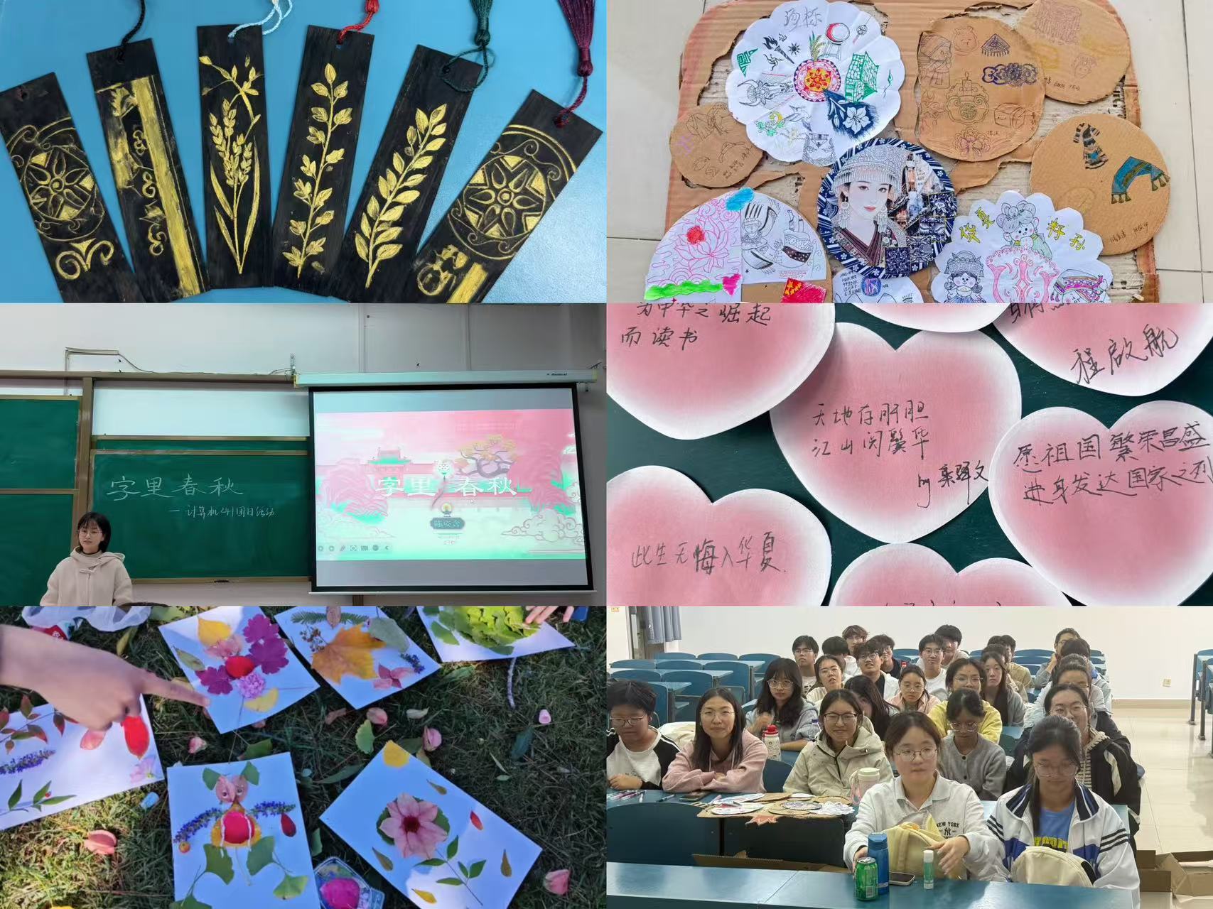 踐行綠色發展理念,勇擔青年時代責任。響應習近平總書記“綠水青山就是金山銀山”的重要論述,活動設置樹葉畫創作環節,同學們以落葉為原料、以環保為理念,精心勾勒“綠水青山”的生態圖景,讓“變廢為寶”的環保理念落地生根。在“民族大團結,共畫同心圓”活動中,大家巧用廢舊紙板創作裝飾畫,融入多民族特色文化符號,共同拼接成“抱團石榴籽”的美好圖案,將中華民族共同體意識深深鐫刻在每一位團員心中。