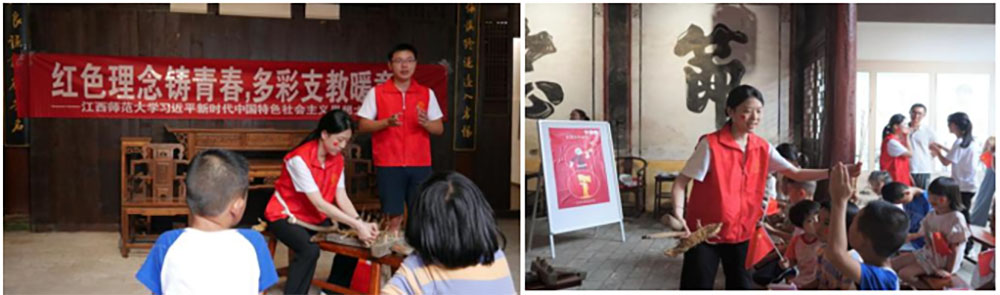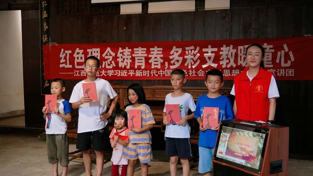 宣講紅色故事,傳播的是黨的思想理念,傳承的是黨的精神血脈。紅色宣講日日講,思想政治教育課日日上,可大多是講給學(xué)生聽、講給干部聽。如何講給孩子們聽,讓孩子們聽進(jìn)、聽懂,這頗具難度卻也極其重要。在炎熱的下午,江西師范大學(xué)習(xí)近平新時(shí)代中國特色社會(huì)主義思想大學(xué)生宣講團(tuán)(江西青馬宣講團(tuán))走進(jìn)了鄉(xiāng)村,為安福縣書樓村的孩子們上了一堂生動(dòng)形象的黨史課。
