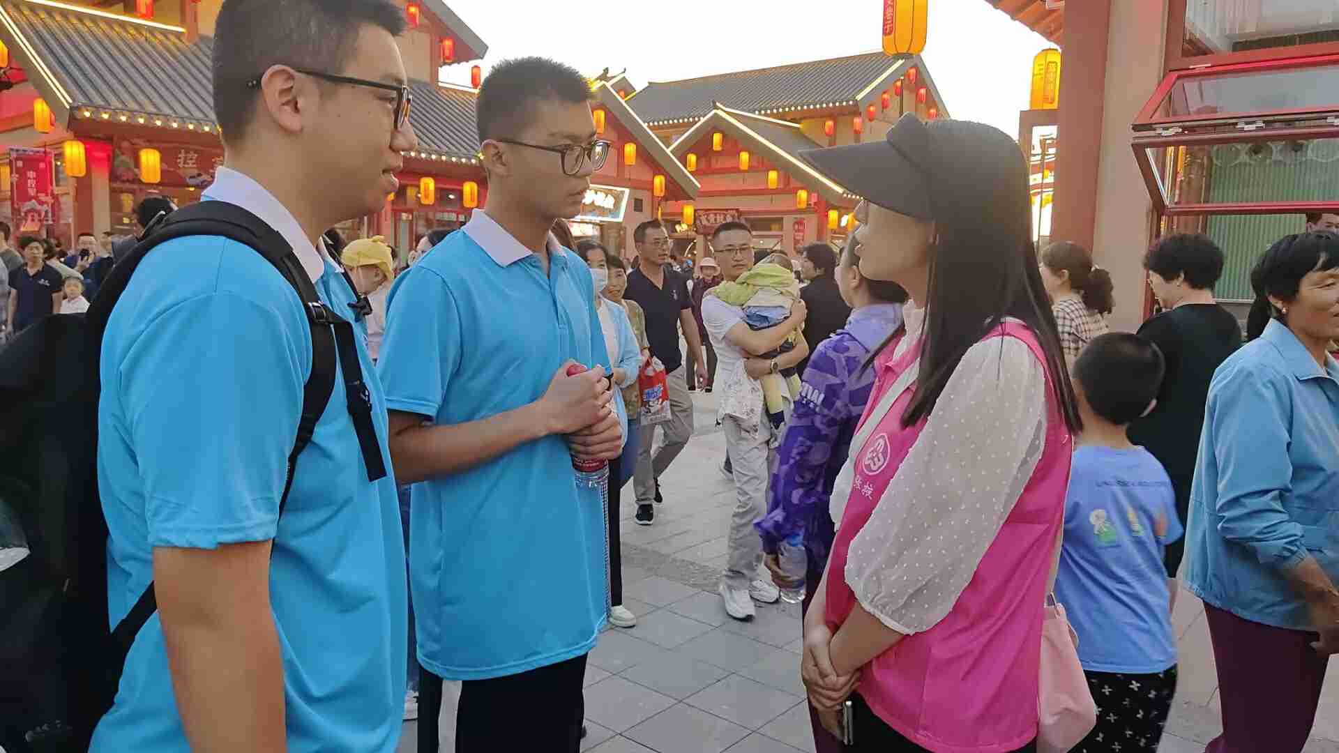 圖為團隊隊員與游客交流,了解游客對焉支巷子的評價。通訊員 王澤菡 供圖