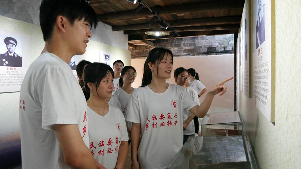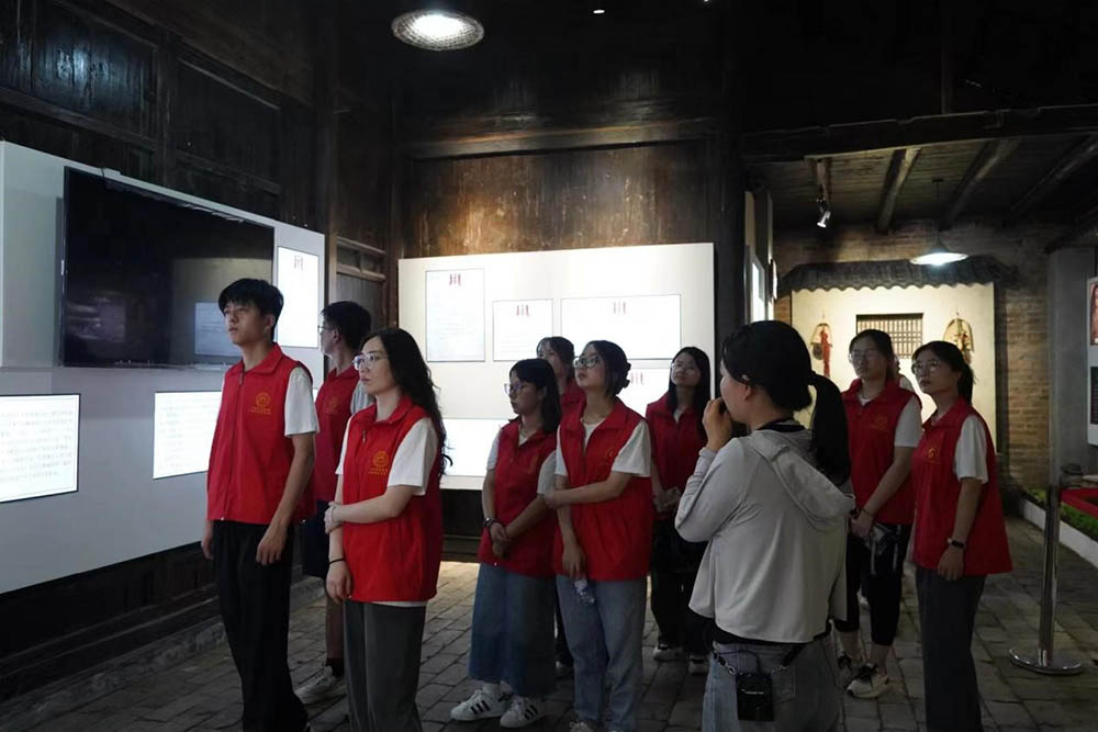重溫革命歷史,傳承英烈精神。在紅色文化志愿講解員的帶領下,宣講團成員來到了書樓村湘贛邊三年游擊戰爭紀念館了解三年游擊戰爭的艱辛歷史。講解員結合“陳毅上武功山”、“三女跳崖”、“彭德懷激戰寅陂橋”等革命時期的紅色故事,講述了中國共產黨帶領人民群眾取得革命勝利的砥礪征程,與隊員們一同感受革命先輩們英勇斗爭、不畏犧牲的鋼鐵意志,重溫中國共產黨不畏艱難開辟革命根據地的光輝歲月。在英雄事跡與偉大精神的感染下,學科教學(思政)專業研究生周夢麗表示:“在未來的學習生活中要不斷學習先烈精神,堅持不移地聽黨話、跟黨走,做新一代好青年,做一名合格的人民教師。”