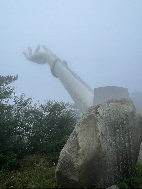 調研團成員們乘坐纜車上山,游覽了女媧手,觀天臺,懸崖棧道等重要游覽景點,并以創新的形式進行打卡宣傳活動。調研成員金舒潤提到“我深刻感受到了‘大好河山,鐘靈秀;無垠林海,毓英杰。’希望通過不同的打卡方式能打造網紅景點,吸引更多的游客前來參觀。”
