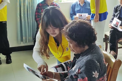 圖為團(tuán)隊(duì)成員在村委會(huì)的會(huì)議室,為當(dāng)?shù)氐母咐相l(xiāng)親們開展反詐騙講座進(jìn)行演講宣傳。