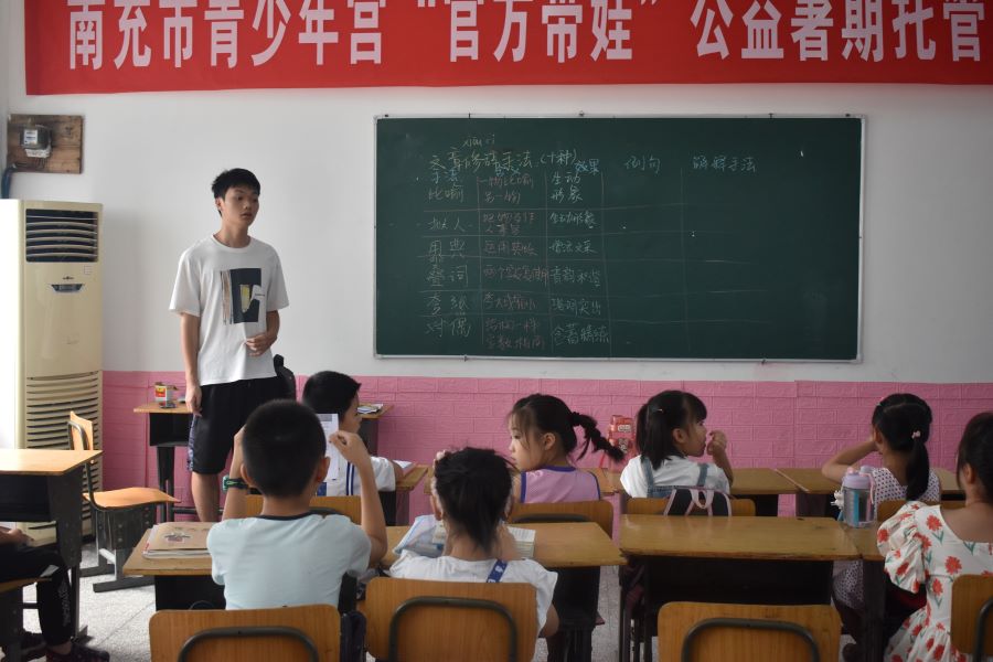 2023年7月19日,西華師范大學(xué)“愛潤童心·藝育童智”暑期社會(huì)實(shí)踐團(tuán)隊(duì)暑期公益課堂火熱開展中,孩子們和隊(duì)員們戰(zhàn)勝炎炎酷暑,堅(jiān)持將公益課堂辦好,為孩子們的暑期增添色彩。圖為孩子們正在認(rèn)真做作業(yè)圖為隊(duì)員在為孩子講解圖為隊(duì)員在講解修辭手法圖為紅色教育課堂圖為科學(xué)課堂孩子們正在積極舉手回答問題