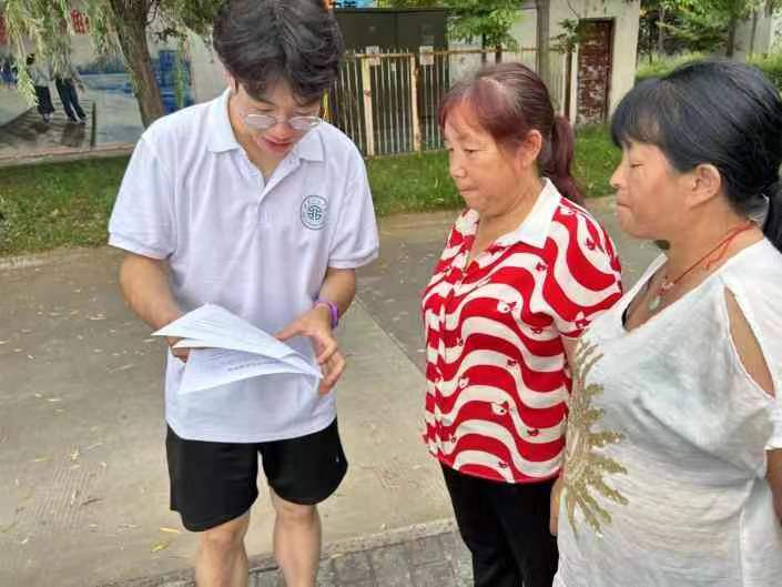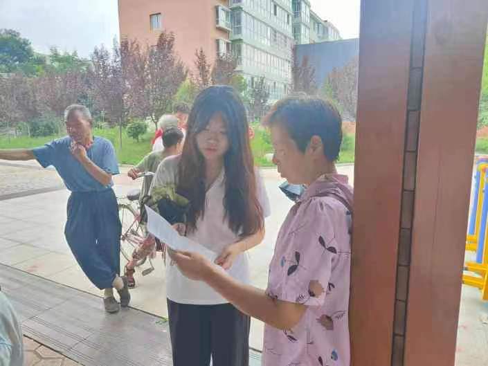 在當地政府的大力支持下,隊員們深入橋南鎮雨露社區開展兒童受教育情況調研。為實現宣講效果最大化,團隊提前準備了詳細的宣傳手冊和政策單。隊員們對居民所關注的兒童上學問題、對應時期的國家資助政策等問題進行了詳細解答,獲得了當地居民的一致好評。