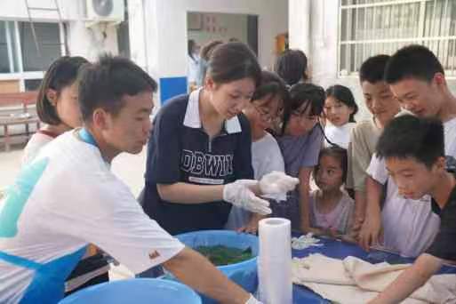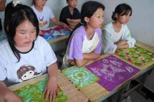 為了貫徹德智體美勞全面發展的總方針,讓留守兒童們的暑期學習更加生動、活潑、富有有趣,實踐隊成員結合本專業相關知識為小朋友們開展了手工扎染、音樂合唱、趣味心理、舞蹈、繪畫、卡通印畫、體育、兒童走秀等藝術課程,不僅在于提高孩子們對學習的積極性,更在于培養他們的興趣愛好、增強自信心,改善他們的心理健康問題。