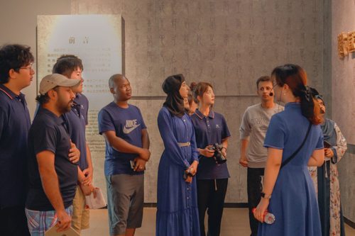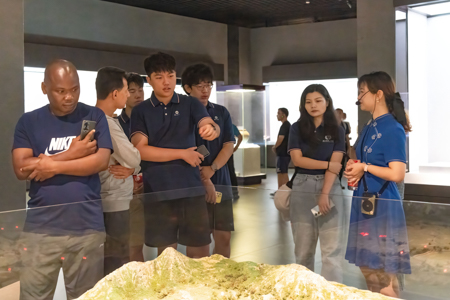 8月17日上午,實踐團來到了河北博物院,參觀了以古中山國、滿城漢墓為代表的燕趙歷史文化遺產。中外學生通過仔細觀察和詳細解說,領略了不同時期中華文化的精華之美,目睹了古代工藝的神奇、歷史人物的風采以及昔日王朝由盛轉衰的時代悲劇。期間,為有效解決留學生語言溝通問題,中國學生一個個化身講解翻譯員,一對一幫扶留學生克服溝通障礙,感受文物所蘊含的文化氣息與歷史痕跡。同時,中外學生在觀展過程中展開的討論與分享,不僅增長了知識積累,而且拓寬了國際視野、提高了跨文化交際的能力。