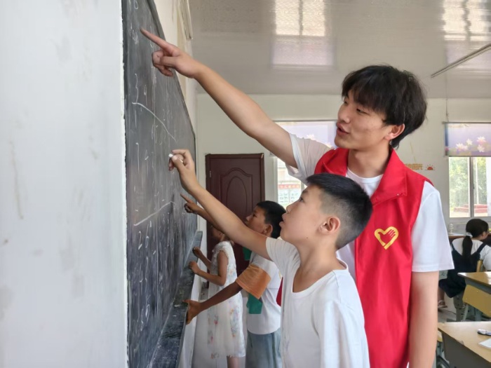 “同學們知道為什么星星會發光嗎?”志愿者時永樂的提問點燃了教室的氛圍。課堂上,他用生動的案例拆解知識要點,孩子們舉著小手爭相回答,黑板上的思維導圖漸漸填滿童趣與好奇。與此同時,志愿者湯媛媛以“防溺水”為主題,通過動畫短片、情景模擬和互動問答,帶著孩子們演練“遇到危險如何呼救”“同伴落水怎樣正確求助”,將安全意識深植心間。教室后方“引領青年服務青年”的標語下,孩子們捧著志愿者發放的科普繪本,眼底閃爍著對知識的渴望。
