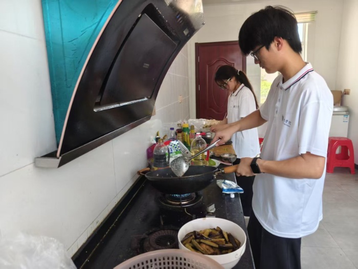 午間時分,廚房飄出陣陣菜香。志愿者王雨樂與葉娜于廚房中忙碌,肉沫燒茄子、番茄炒蛋等在鍋中翻滾,孩子們排著隊接過盛滿飯菜的餐盤,嘴角沾著米粒的笑容讓暑熱都化作了暖意。而下午的拼圖挑戰賽更是將氣氛推向高潮——志愿者與孩子們圍坐成圈,有人負責尋找邊角塊,有人專注拼接圖案,當一幅“鄉村風景圖”在桌上成型時,掌聲與歡笑聲撞碎了午后的蟬鳴。“哥哥姐姐拼得快!”二年級的小宇舉著拼圖碎片,眼里滿是崇拜。