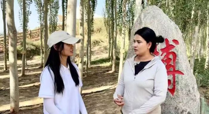 參觀期間,實踐團還跟隨防沙治沙中心護林員阿卜杜熱伊木・艾麥爾、阿布都卡迪爾・卡米力、阿布都沙拉木・艾爾肯里三人,詳細了解生態林的建立與維護體系。在與負責人肉孜萬姑・阿布都賽買提的交流中,隊員們知曉了當地治沙工作從“沙進人退”到“林進沙退”的歷史轉變,以及群眾依托生態資源,通過護林就業等方式實現增收的具體情況。這讓隊員們真切感受到,沙漠植被既是生態系統的守護者,更是民生發展的支撐載體,代代傳承的治沙實踐,正持續推動生態保護與民生改善互促共進。