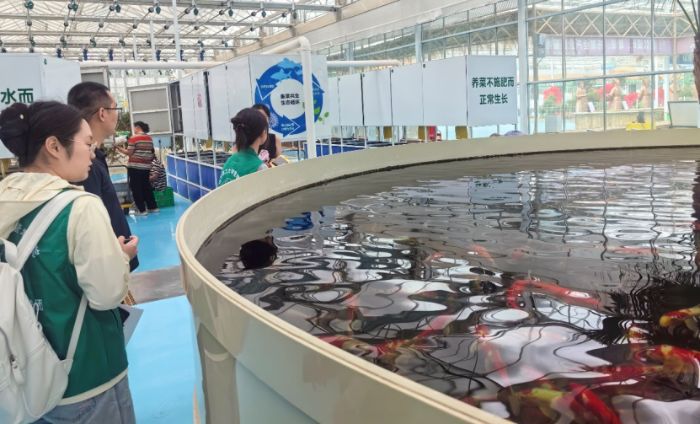無土栽培展廳的技術創新更讓成員們駐足。螺旋管道式栽培的營養液循環流淌,廊架式栽培的錦屏藤氣根垂落如簾,荷蘭桶栽培的陶粒穩穩固定著植株根系。最令人稱奇的是魚菜共生系統:魚池廢水經過濾、殺菌后成為蔬菜的“營養液”,蔬菜吸收養分后又將清水回流魚池,形成“養魚不換水、種菜不施肥”的生態閉環。“我們的無土栽培營養液成本為零,奧秘全在這魚池里。”技術員笑著揭開謎底。