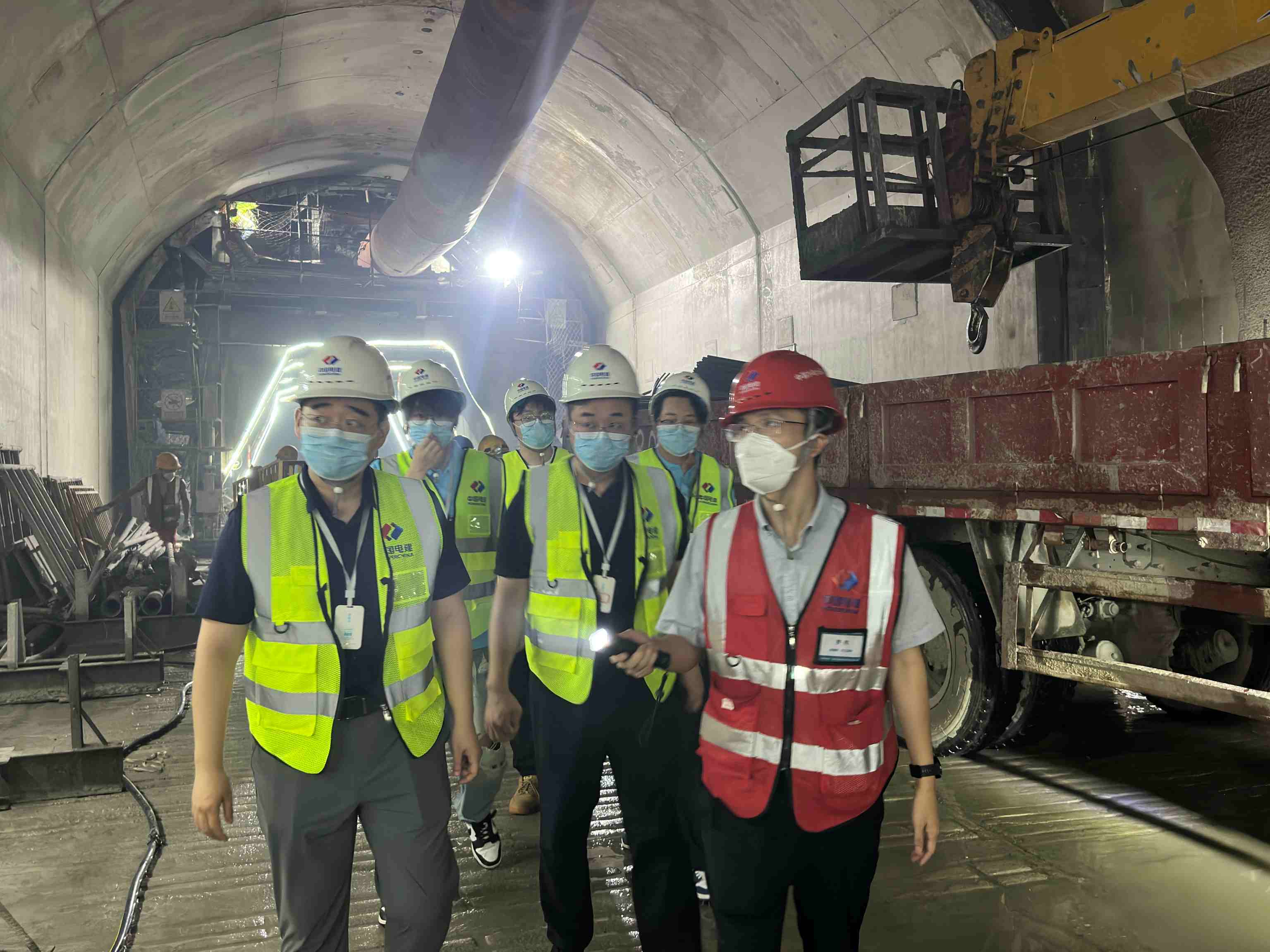 在項目技術負責人的帶領下,團隊成員頭戴安全帽、身穿反光背心,深入地下隧洞內部實地考察,切身感受“千米巖腹筑水脈”的工程壯景。沿著隧洞前行,耳邊是機械轟鳴與交叉作業的井然節奏,眼前則是巨大的拱形開挖面與高效運轉的智能監測設備。