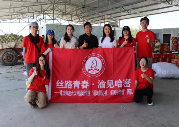 在第三次中央新疆工作座談會上,習近平總書記強調要弘揚民族精神和時代精神,踐行胡楊精神和兵團精神,激勵各級干部在新時代扎根邊疆、奉獻邊疆。懷揣著這份憧憬,2025年7月,重慶師范大學“絲路青春·渝見哈密”社會實踐服務團(外國語學院)奔赴邊疆,在外國語學院黨委副書記曹麗、指導老師杜佳、吳佳欣的帶領下,走近薩爾喬克鄉參與西部計劃的志愿者們、巴里坤縣發展與改革委員會援疆干部蔡甲副主任、新農人閆小兵等奮斗者的身邊,聆聽他們的故事。