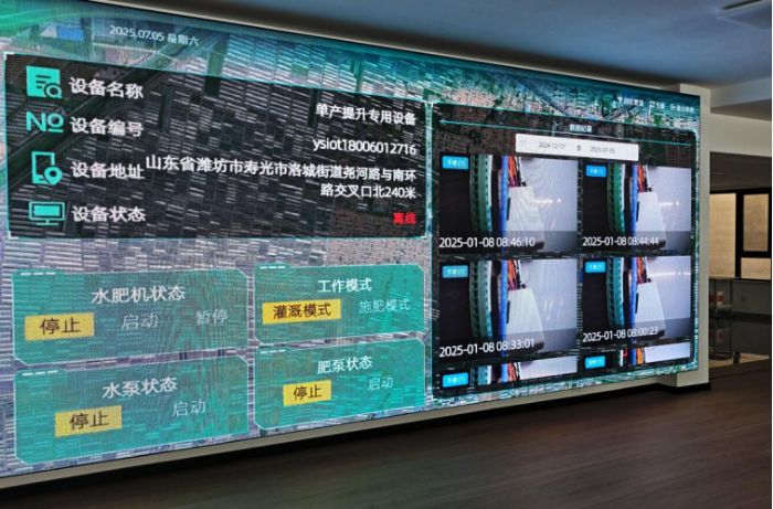 “大田用的設備適合小麥、玉米等戶外作物,溫室里的則是固定底座設計。”技術人員指著不同型號的設備說,“像藍莓種植需要每隔幾小時灌溉一次,人工很難精準把控,用這套設備既能定時定量,又能省工省力。”在公司的物聯網控制中心,一塊可視化大屏實時展示著當地天氣、大棚環境數據、水肥機運行狀態和種植信息。“如果管理多個園區,大屏能一目了然;散戶用手機小程序就能操作,基礎功能都是免費的。”技術人員補充道,“設備還帶電子圍欄功能,超出范圍會自動報警,既防盜又能追蹤軌跡,顯示屏還能抓拍操作員,保障使用安全。”當被問及散戶應用情況時,技術人員坦言:“目前散戶使用較少,主要是成本和操作門檻問題,但隨著農業精細化發展,智能設備會越來越普及。”實踐團成員深刻感受到,從“看天吃飯”到“數據種田”,科技正讓農業生產更高效、更精準。