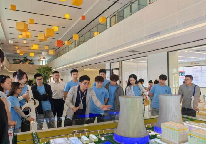 駐足園區模型前,通過負責人講解,服務團成員了解到基地的核心生產脈絡與節能站的循環系統,通過探秘工程細節持續深化對“疆電入渝”工程和國家能源戰略的認知,讓家國擔當在實踐探訪中愈加鮮明篤實。