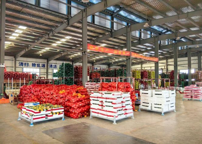 在加工工作間,實踐團看到工人們正有條不紊地對小西紅柿、卷心菜、小黃瓜等蔬菜進行挑揀裝盒、包裝,并按照配比裝箱。魏總介紹,這批蔬菜是從特菜基地摘取的,在經過嚴格的農殘檢測后,進入加工、分裝環節,隨后將會發往煙臺的訂貨方。集團在各地建有辦事處,專門負責聯系當地的超市、社區和專業市場。當接到訂單后,配送中心便從自己的各個基地以及周邊有合作關系的網絡戶處收取對應的蔬菜,經過精心分裝后發貨。以土豆為例,集團的內蒙古基地土豆產量很高,除了部分在當地銷售之外,大部分都會運來壽光的配送中心進行統一配送。