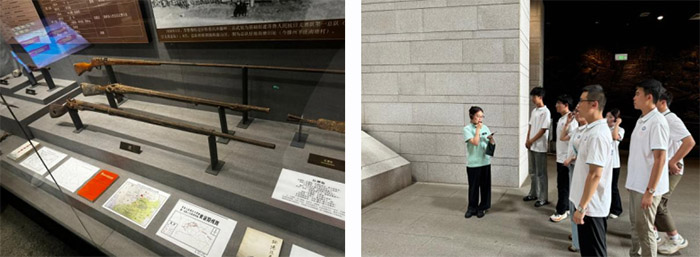 步入莊嚴肅穆的紀念館,歷史的厚重感撲面而來。在講解員的引領下,服務隊成員依次參觀了“抗日烽火燃魯南”“鐵道飛虎出奇兵”“紅色基因永傳承”等主題展區。展區內陳列的步槍、鐵軌零件、歷史照片等實物,配合詳實的文字說明,展現鐵道游擊隊的發展歷程,為隊員們們搭建起直觀了解魯南地區抗日歷史的平臺,夯實歷史學習的實物基礎。