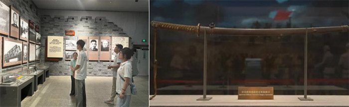 行程的終點,“沙溝受降”展廳為本次參觀畫上了富有深意的句號。在展館肅穆的光線下,一柄日本武士刀靜臥于展柜。這曾是侵略者耀武揚威的兇器,象征著鐵蹄下的壓迫與血腥。它警醒后人:和平非天賜,乃是以不屈斗爭鑄就的永恒豐碑。每一道寒光,都是穿越時空的凝視,提醒我們銘記歷史,珍視當下,捍衛來之不易的和平之重。