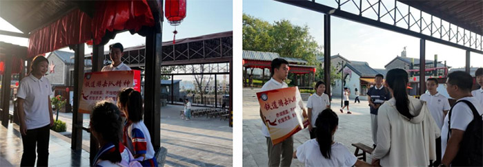 從鐵道游擊隊紀念館離開后,服務隊深刻感受到了鐵道游擊隊的精神內涵,自發組織起一場鐵道游擊隊精神宣講,為來往的路人講解鐵道游擊隊精神。從他們如何在艱苦的條件下,憑借著機智和勇敢,在鐵道線上與敵人展開殊死搏斗,到他們如何巧妙地利用地形和敵人的弱點,一次次地截獲敵人的物資,為抗日根據地提供有力的支持。路人聽得全神貫注,被鐵道游擊隊“赤誠報國、不怕犧牲、機智靈活、勇于亮劍”的精神深深打動。