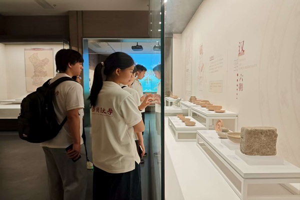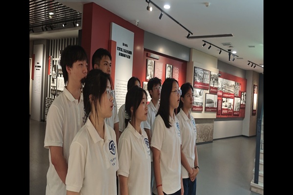 隨后,實(shí)踐團(tuán)來到弋陽縣博物館,剛進(jìn)入展館就被序廳巨幅銅板畫“在弋陽看見可愛的中國”所吸引,聚焦于其鮮明的紅色主題所象征的革命精神。在博物館講解員的引導(dǎo)與講解下,成員們重點(diǎn)學(xué)習(xí)了弋陽光輝的革命斗爭(zhēng)史:方志敏等革命先驅(qū)在此傳播馬克思主義火種,從領(lǐng)導(dǎo)創(chuàng)建閩浙贛革命根據(jù)地到率抗日先遣隊(duì)出征,從獄中寫下《可愛的中國》到慷慨就義的事跡,通過實(shí)物與圖文相結(jié)合的方式生動(dòng)呈現(xiàn)。實(shí)踐團(tuán)成員在相關(guān)展區(qū)前久久佇立,了解紅十軍誕生、抗日先遣隊(duì)組建等革命史實(shí),深刻感悟弋陽這片紅土地上“愛國、創(chuàng)造、清貧、奉獻(xiàn)”的精神傳承。