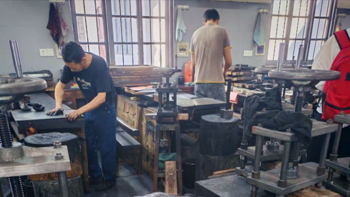 圖為文墨廠制墨師傅制墨場景 梁亞文 供圖