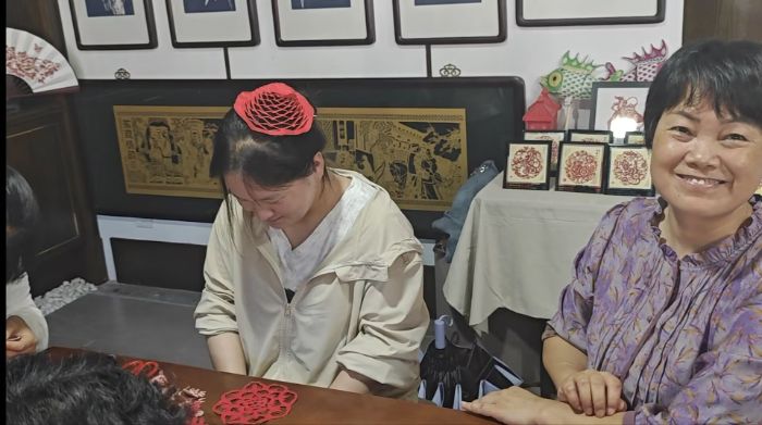 從與吳笑梅老師的相處與溝通中實踐成員們得知,徽州剪紙起源于唐宋,早期作為刺繡底樣存在,明清時隨徽商興盛走向成熟,題材擴展至民俗、山水,成為節慶裝飾主力。近現代,剪紙文化經吳笑梅等傳承人們創新,于2008年列入省級非遺。