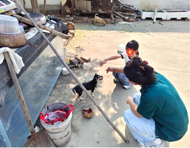 書本里的知識,在田莊村的土地上有了生動的注解,也成了連接科普知識與田間生活的奇妙引線。聽完隊員們講的科普內容,悅悅興奮地拉著隊員走到院子里的辣椒叢前,小手指著綴在綠葉間的紅的、綠的果實,開心地說:“看!辣椒又多了三個,昨天我數的時候才兩個呢!”隊員們立刻被孩子的喜悅感染,順著她的指引走近,輕輕觸摸著帶著露珠的葉片,贊嘆道:“長得這么好,肯定是你每天澆水施肥都特別認真吧,真是個能干的小園丁!”悅悅晃著小腦袋,得意地笑了:“那當然啦,辣椒可是菜園子里的寶貝呢,我每天都來看看它們,我的小狗豆豆也會在旁邊陪著我,就像在給辣椒站崗放哨一樣。”