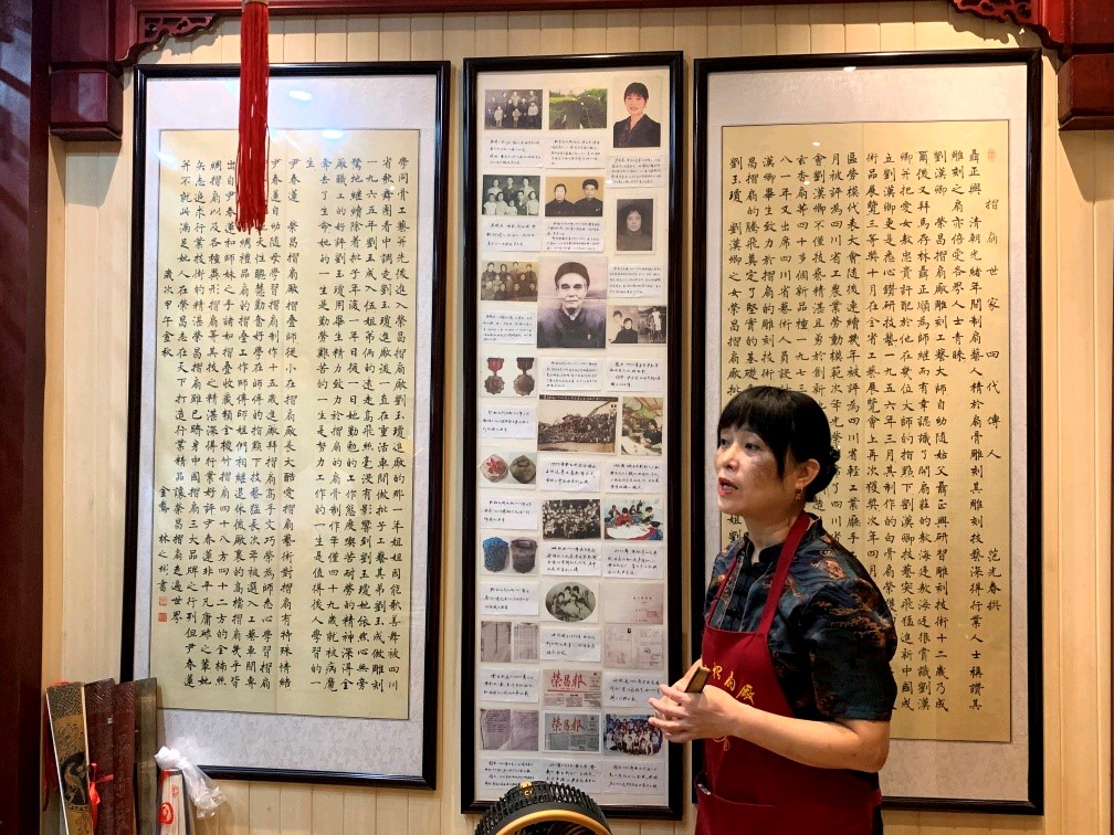(圖為尹師傅介紹折扇廠歷史 王娜攝)