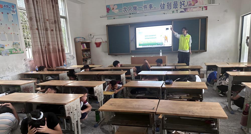 宣傳安全教育,為生命安全筑牢防線 泉州師范學院涌泉支教普法隊在洋墩鄉支教期間,堅持“安全第一”的教育理念,將法治教育與安全教育有機融合,通過理論講解與實踐演練相結合的方式,切實提升鄉村青少年的安全意識和自我保護能力。 在主題班會課程中,團隊采用多媒體教學手段,通過精心制作的課件和警示教育視頻,系統講解消防安全和防溺水知識。此外,團隊還組織開展了地震應急疏散演練,指導學生掌握正確識別警報信號、規范實施“伏地、遮擋、手抓牢”避震動作以及有序撤離等關鍵技能。“通過情景模擬和實操訓練,我們希望幫助孩子們將安全知識轉化為實際能力。”支教隊員表示。觀察發現,學生們在演練過程中展現出良好的紀律性和應變能力,活動顯著提升了學生的安全意識和應急能力。