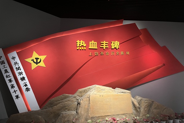 實踐團重點參觀了上饒市博物館“熱血豐碑”主題展廳。步入展廳,一面鮮紅的主題墻瞬間將成員們帶入那段烽火連天的革命歲月。贛東北蘇區的壯闊史詩在此徐徐展開——這片曾被毛澤東同志高度評價為“方志敏式”模范根據地的熱土,其政權建設的探索、將支部建在連隊與鄉村的創舉,無不閃耀著革命先輩們“忠實為群眾謀利益”的赤誠初心。先輩們堅定的信念與無私的奉獻精神深深烙印在每位成員心間,令人心潮澎湃。
