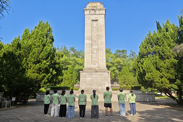 步入松柏蒼翠的烈士陵園,156位來自五湖四海的先烈姓名環繞公墓。成員們緩步繞行,凝視著每一個不朽的名字,追思那段血與火的歲月,胸中激蕩著無盡的崇敬與哀思。巍峨的革命烈士紀念碑前,“革命烈士們永垂不朽”九個大字在陽光下熠熠生輝。全體成員肅立,整齊列隊,懷著無限崇敬仰望豐碑,深切緬懷為民族解放獻出生命的英雄英魂。