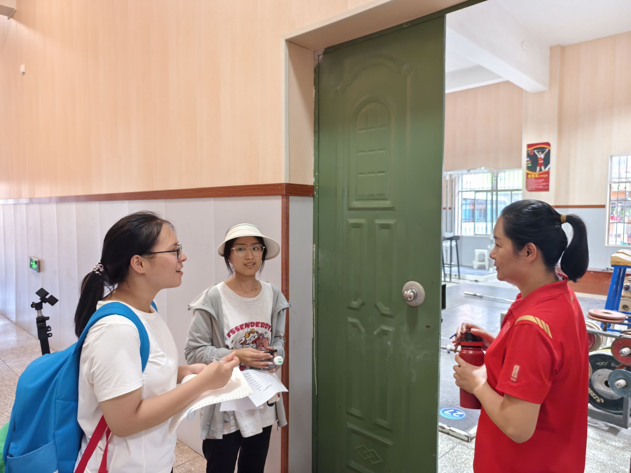 圖為團隊成員在采訪文化廣電和旅游局中的保安人員 韋佳彤供圖。