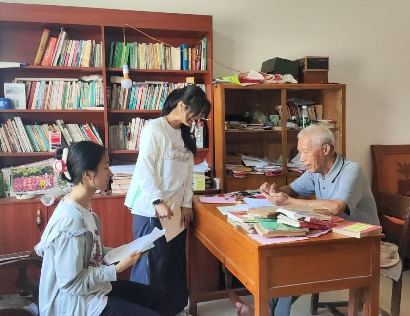 訪談中,岳建肖向實踐團詳細介紹了“雖蕾”山歌在當下的生命力。他提到,目前仍有像“李姑姑”這樣活躍在基層的民間歌手,他們不僅在傳統場合演唱,還積極利用微信、抖音等社交媒體平臺發布山歌作品,嘗試用新的方式吸引觀眾。“這些歌手在網上發歌,讓外面的人也能聽到我們上思的山歌。”岳建肖介紹道。