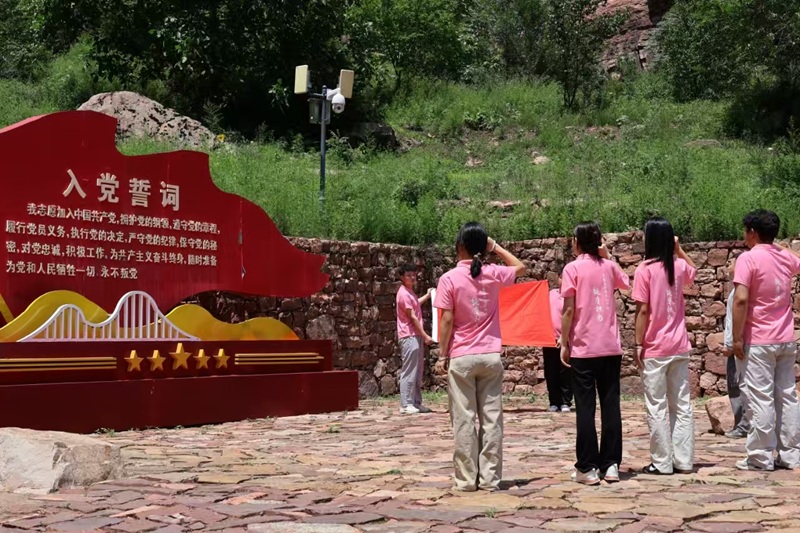 在甕圪廊廣場,鏗鏘誓言劃破山谷的寧靜。全體學生黨員面向黨旗高舉右拳:“傳承紅色基因,勇擔時代使命,以匠心致初心,以實干筑夢想!” 這聲音穿越八十載光陰,與當年兵工廠的機床轟鳴形成跨越時空的和鳴。