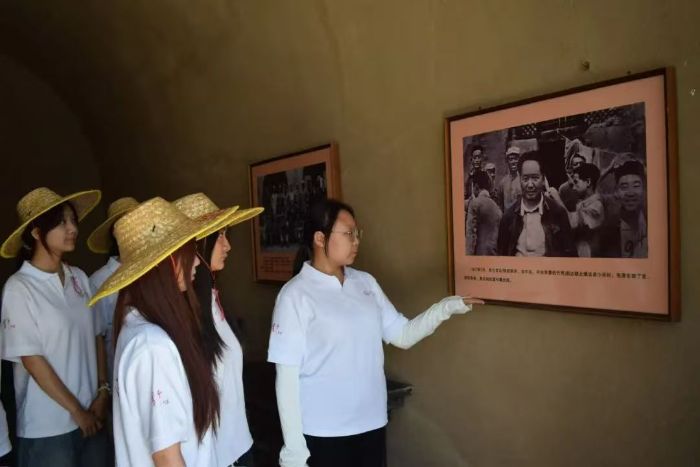 實(shí)踐期間,楊家溝紀(jì)念館副館長(zhǎng)劉翠霞的傾囊相授成為最珍貴的滋養(yǎng)。她手把手指導(dǎo)隊(duì)員打磨講解技藝——從語(yǔ)氣語(yǔ)調(diào)的精妙拿捏到故事細(xì)節(jié)的精準(zhǔn)取舍,從站姿微笑的禮儀規(guī)范到互動(dòng)交流的恰如其分。在她的耐心點(diǎn)撥下,隊(duì)員們不僅將講解詞內(nèi)化于心,更發(fā)揮英語(yǔ)專業(yè)所長(zhǎng),嘗試用中英雙語(yǔ)講述紅色故事。當(dāng)熟悉的革命情節(jié)遇上精準(zhǔn)的外語(yǔ)表達(dá),紅色文化的傳播煥發(fā)出新的活力。隊(duì)員們也在反復(fù)錘煉中突破自我,逐漸成長(zhǎng)為能夠獨(dú)當(dāng)一面的“雙語(yǔ)紅色講解員”。