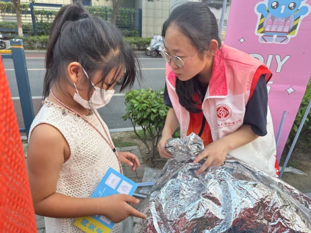 防洪應(yīng)急包,識(shí)物會(huì)用保平安:在“防洪應(yīng)急包”體驗(yàn)區(qū),侯文靜、夏婉茹兩位隊(duì)員則開啟了細(xì)致的科普教學(xué)。通過引導(dǎo)小朋友們深入帳篷中拿出他們認(rèn)為重要的應(yīng)急物資,提高了小朋友們的參與熱情。隨后隊(duì)員們將小朋友拿出的物資與防洪應(yīng)急包物資參考清單進(jìn)行對(duì)照,詳細(xì)向孩子和家長(zhǎng)介紹了各物品的實(shí)用性與重要性。