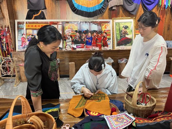 隊(duì)員們俯身深耕調(diào)研,緊扣刺繡技藝核心,深入探尋彝繡非遺文化在當(dāng)?shù)氐膫鞒鞋F(xiàn)狀與發(fā)展困境。他們一邊靜靜聆聽民眾講述民族文化傳承中的鮮活故事與真切心得,一邊與當(dāng)?shù)鼐用翊傧ソ徽劊?xì)致梳理傳承路上的難題與創(chuàng)新方向。針對不同群體特點(diǎn),團(tuán)隊(duì)采用線上線下相結(jié)合的調(diào)研方案,收集到豐富詳實(shí)的一手資料,為后續(xù)形成針對性強(qiáng)的調(diào)研報(bào)告與建議筑牢了根基。實(shí)踐隊(duì)員李佳佳坦言:“這次馬邊彝繡調(diào)研,不僅讓我們對非遺文化的認(rèn)知更深刻,實(shí)踐調(diào)查能力也得到提升,更讓我們真切感受到傳承民族文化的沉甸甸的責(zé)任。”