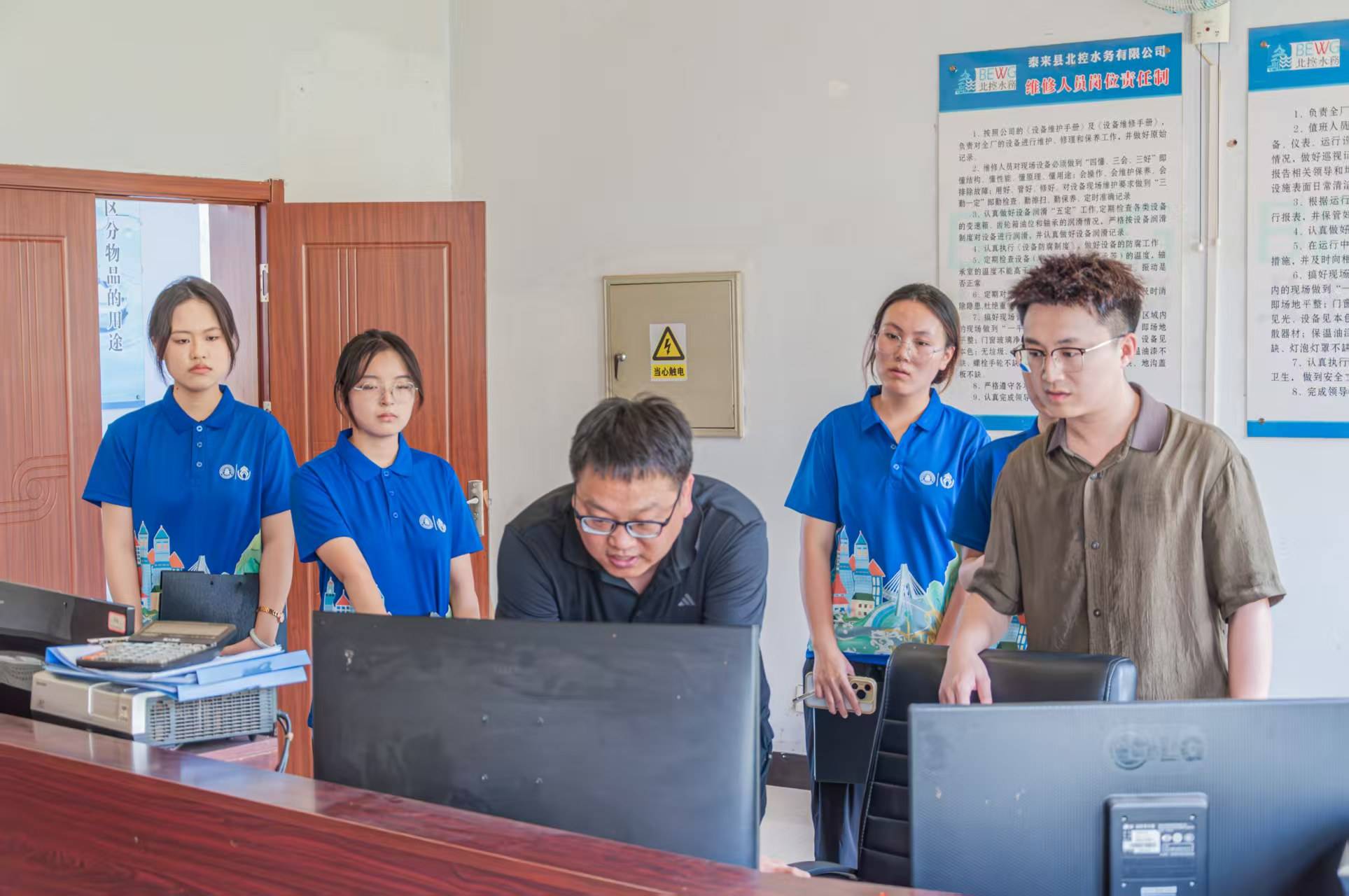 隨后,實踐小隊來到泰來縣污水處理廠進行交流學習。這座現代化污水處理廠采用先進工藝,日處理能力達2萬噸,承擔著全城生活污水與部分工業廢水的凈化重任。污水處理廠負責人李云愷帶領隊員們參觀了完整的污水處理流程,從格柵間到生物反應池,再到深度處理單元,詳細講解各環節的工作原理。“污水處理不僅是技術活,更是一門需要精益求精的藝術。”隊員劉一涵在參觀后表示。