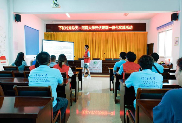 為深化“十四五”規劃對鄉村能源轉型的部署,落實“雙碳”戰略與鄉村振興同頻共振,讓光伏建筑一體化技術真正“飛入尋常百姓家”,把光伏建筑一體化轉化為鄉親們通俗易懂的宣講文案,讓綠色環保理念深入人民內心,進而實現光伏建筑一體化技術在鄉村的認同與普及,7月15日-21日,河海大學江蘇常州光伏建筑一體化科普團在常州開展了一系列實地調研與科普宣講活動。實踐團先后走進中德常州創新產業園、江蘇厚生新能源科技有限公司、正信光電科技股份有限公司、直溪鎮、南洲村、下杖和白塔村等地,通過企業參訪、村民訪談、問卷調研、科普宣講等形式,探索光伏技術應用與鄉村發展的融合路徑,為推廣清潔能源貢獻青春智慧。