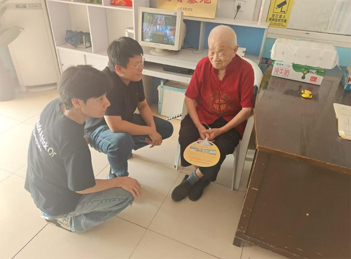 圖為實踐團成員正在與老人聊天